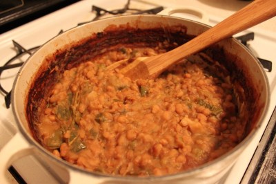 Even Josh thought I was weird for eating it. But what it lacked in beauty, it made up for in taste. Like the fried salt pork, these beans are to be savored in small quantities. I liked them best accompanied by a warm cheese biscuit and some fruit. If you’re looking for a hearty dinner that will last you all week, and you’re up for some front-work (and bean-attending), try them.