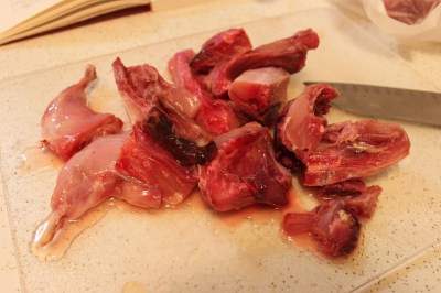 I definitely wouldn’t make this stew again (that sauce), and I’d have to work up the courage to buy another skinned rabbit from the butcher before I ventured near it again. But preparing for this stew was a surprisingly sobering experience. It wasn’t until I visited that butcher that I realized just how sanitized our mainstream American experience of food has become. I’ve been accustomed to seeing only beef, chicken, turkey, and pork in the supermarket, wrapped up nicely in plastic packages. Were it not for this project, I doubt I would have fully considered how limited that meat selection really is.