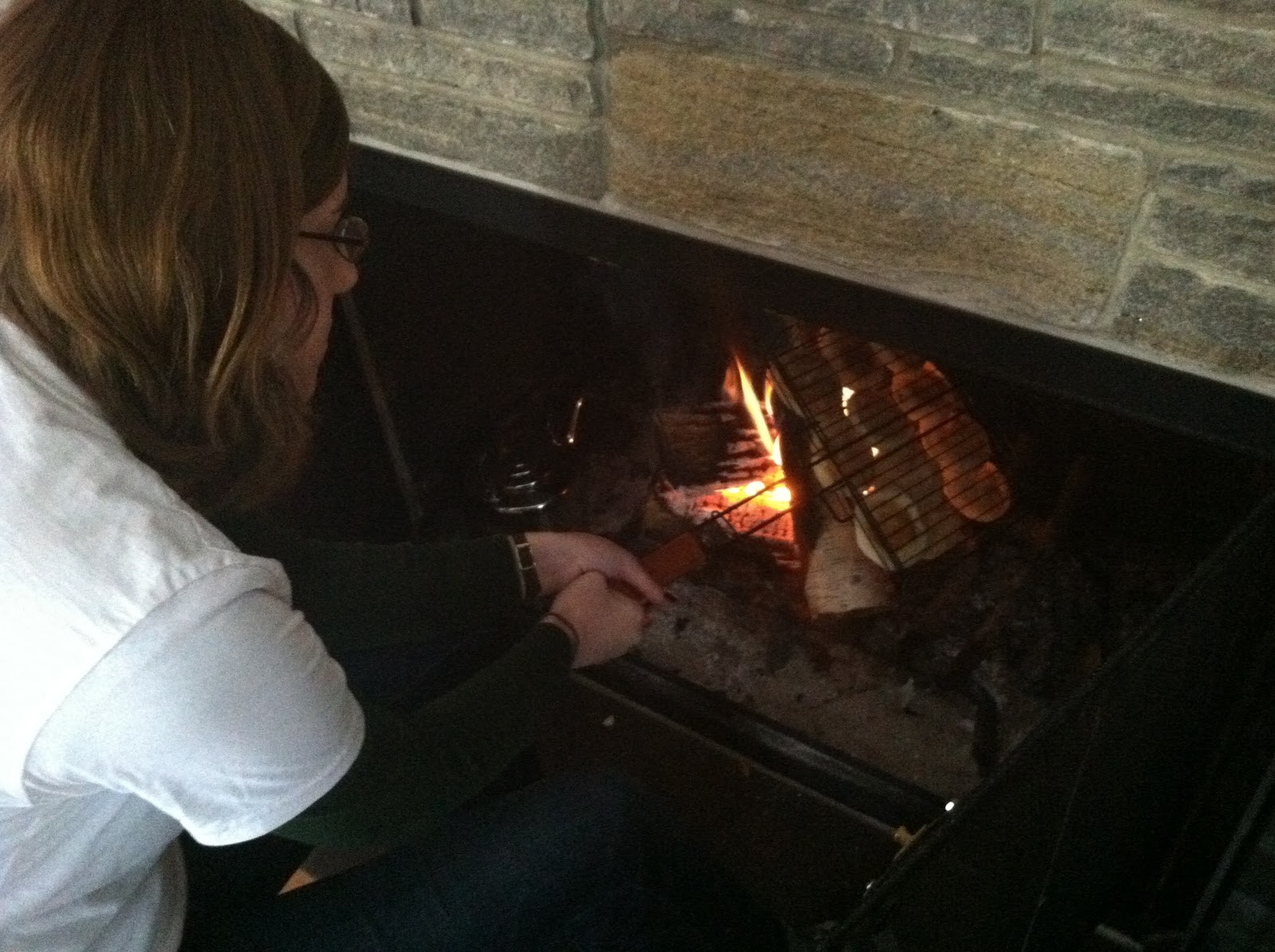 That’s when my hearth cooking instinct kicked in. I built a fire (and briefly smoked out the place when I forgot to open the damper), and we set about making the best of things. Around mid-morning, we toasted a passel of English muffins over the fire while Josh’s dad fried up peppery eggs on the grill.