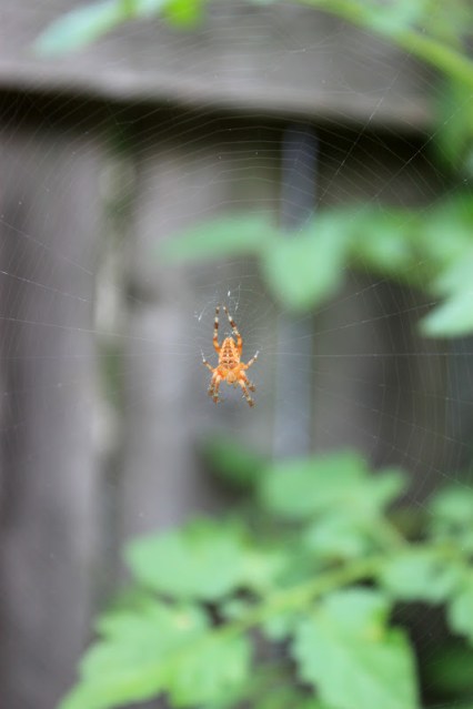 Maybe it’s because I’m too busy thinking about my tomatoes. And that little guy above. He’s taken up residence between two tomato cages, and he’s a stubborn one. So after trying to discourage him several times, I decided to let him be. And now I’m glad I did.