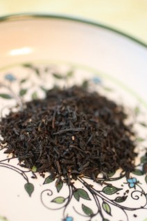 Once you’ve assembled your materials, fill the large teakettle with water and heat until boiling. Pour enough boiling water into the smaller teapot to fill, then let sit for 2-3 minutes. This heats up the teapot so it will keep the tea warm for a longer time. Meanwhile, measure out the tea you’ll need. Mrs. Beeton recommends “the old-fashioned plan” of 1 tsp per person, plus 1 tsp “for the pot.” When I make tea for myself, I like to use 2-3 tsp of tea total, depending on how much I want.