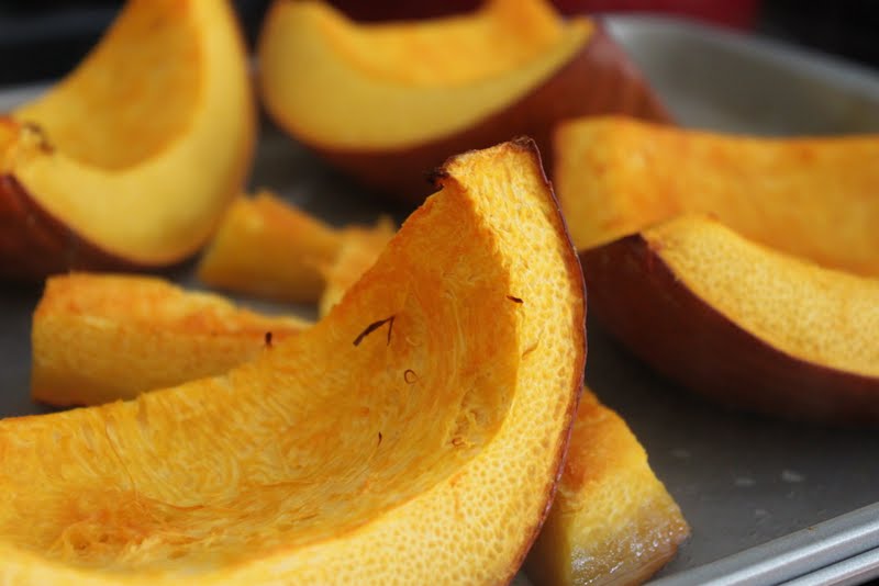 Back at home, we carved some impressive jack-o-lanterns, which proceeded to mold within one week (damn this warm weather!). The sugar pumpkin I cut into pieces and baked in the oven, until it felt soft under the touch of a fork. (I made sure not to follow my dad’s example, where he stuck an entire, whole pumpkin in the oven to roast. He realized that something was wrong when he heard a bang and found the entire kitchen covered in pumpkin guts.)
