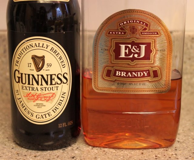 Mix the flour, breadcrumbs, brown sugar, and spices together in a large bowl. Then add the apple, crystallized orange peel, and citrus zest. Mix well. Finally, add the citrus juice, butter, eggs, and soaked raisins together with the remaining brandy. Add the stout at the very end, and mix until just incorporated.