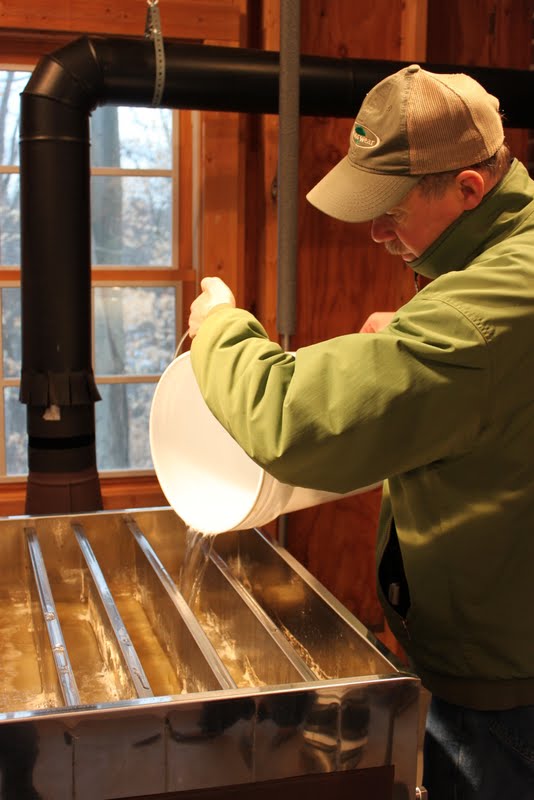 In our family, February and March are the maple syrup months. Temperatures dip to freezing at night and warm up during the day, so the sap runs easily from the trees. Evenings are spent out in the sugar shed, boiling sap down to golden syrup in a gas-heated evaporator. On weekends, we enjoy pancakes with maple syrup fresh from boiling.