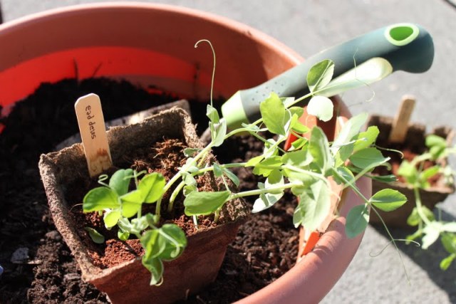 So far, I’ve had mixed results. The plants are hardening off just fine, but last week I left some of the snap peas and peppers outside during a rather serious few days of rain, which meant the plants went swimming. The poor guys got so waterlogged that I had to pour off rainwater on more than one occasion. But they seem to be perking right up now that the sun has returned, and I’m looking forward to moving more starts into containers.