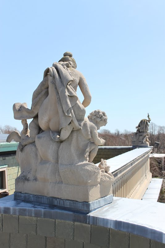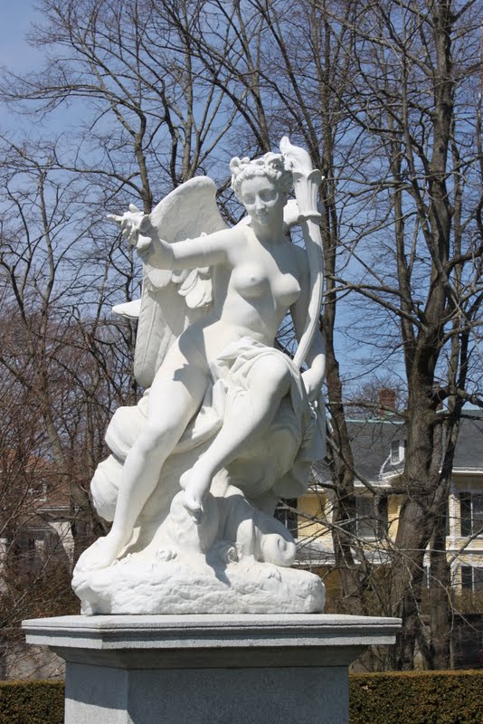 On Tuesday, Josh and I drove down to Newport to visit The Elms, one of the mansions on Bellevue Avenue. We listened to NPR for the first half of the trip, but after a while it got to be too much, hearing such gruesome details about limbs lost as we passed flowering trees and sparkling water. So we turned to a music station, though not without feeling a bit callous for enjoying such a beautiful day.
