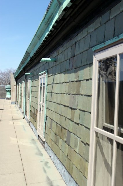 We’ve been on a number of “regular” mansion tours in Newport over the past few years, so we decided to go on the “behind the scenes” Servant Life tour. Instead of wandering through the lavish parlors and second parlors and bedrooms, we came in through the servants’ entrance on the side, passing under wisteria grown specifically to mask the servants’ comings and goings. We hiked up four flights of back stairs to the servants’ quarters, which resembled dormitories more than anything else (and were not divided by gender, as in Downton Abbey). We went out on the roof, where the servants could take smoke breaks or hang out when off-duty, camouflaged by an immensely tall wall. And we plunged into the basement boiler room and peered at the coal delivery system, a long tunnel with its own delivery cart.