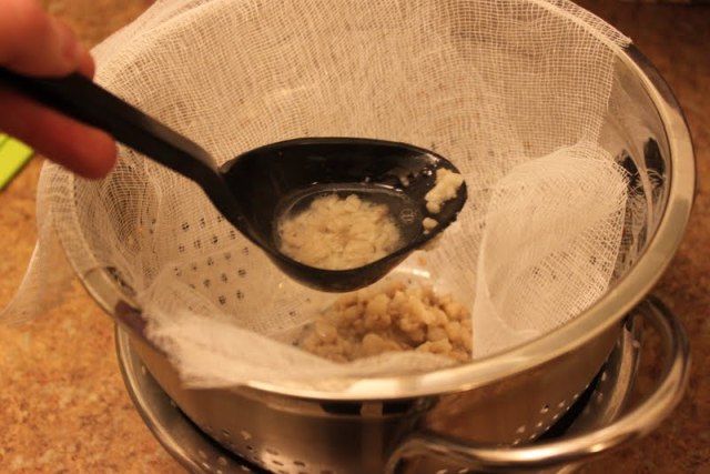 4. Strain through a cheesecloth to remove all the browned bits.